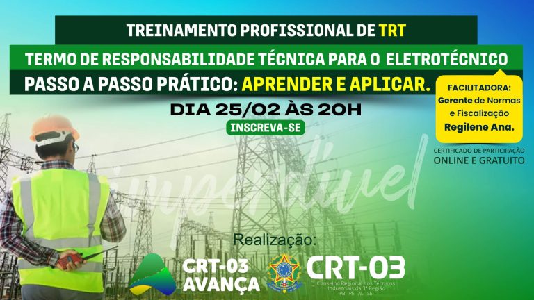 O CRT 03 convida todos os profissionais e técnicos para a EXPORENOVÁVEIS 2026, o maior encontro de inovação e sustentabilidade…