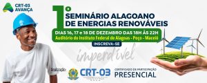 Inscreva-se agora: https://www.even3.com.br/1-seminario-alagoano-de-energias-renovaveis-667184/